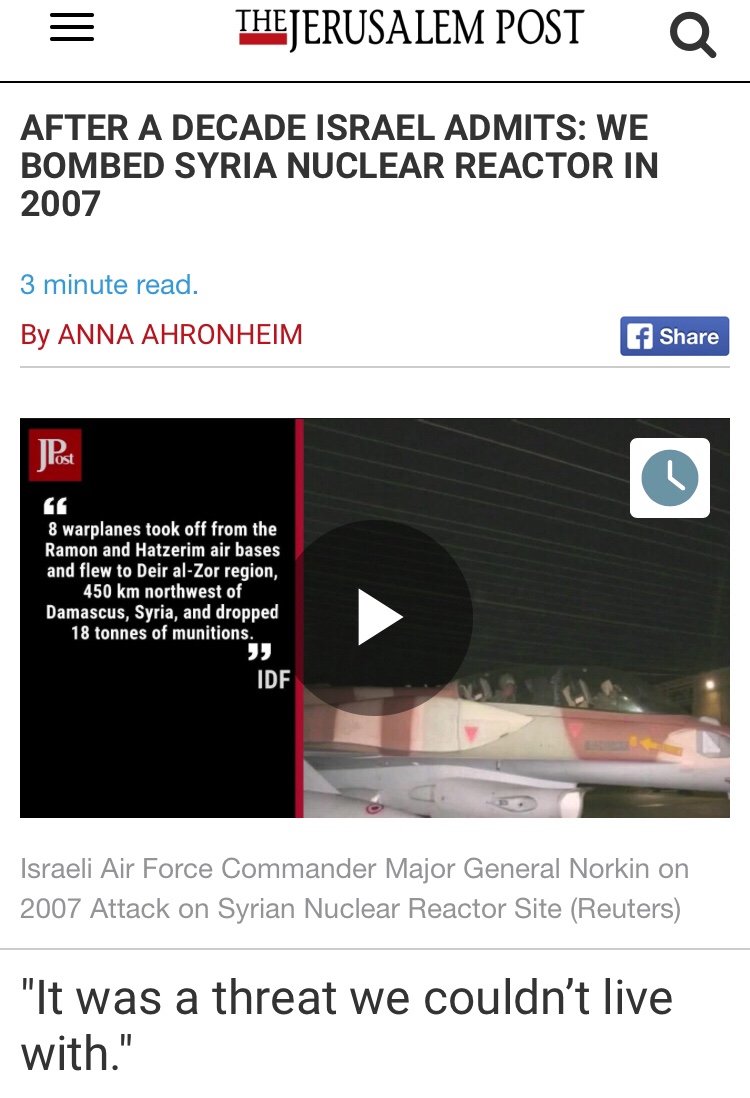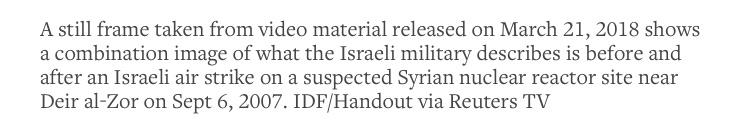 -We [military reporters and researchers] all knew that Israel hit Syria in 2007, but until Bolton was a shoe-in to replace McMaster & Israel was sure the Iran deal was dead, they didn’t admit it-