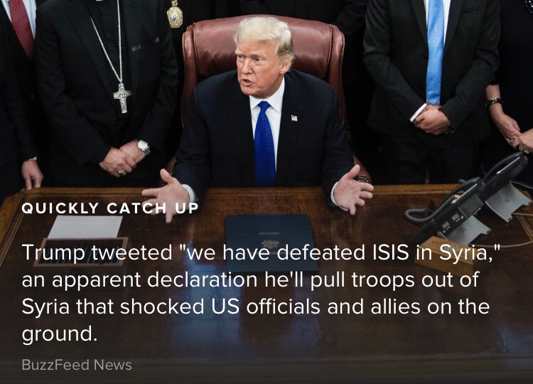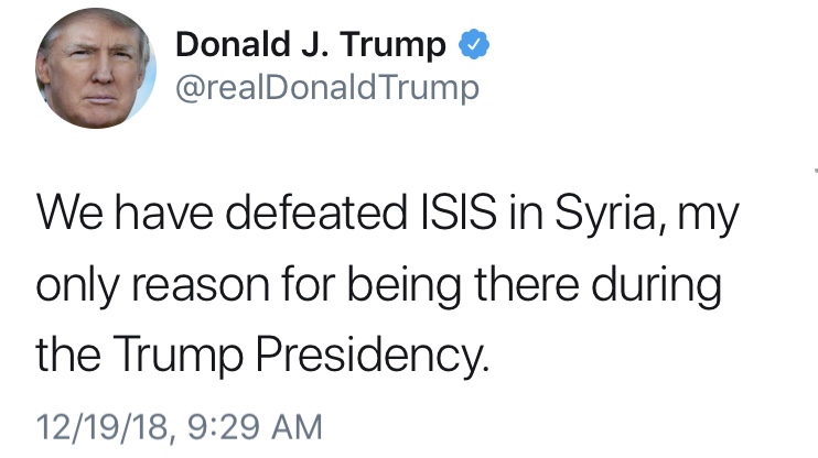 Trump has Twitter announced that we’re getting out of Syria! Hooray, we won, we’re coming home.
