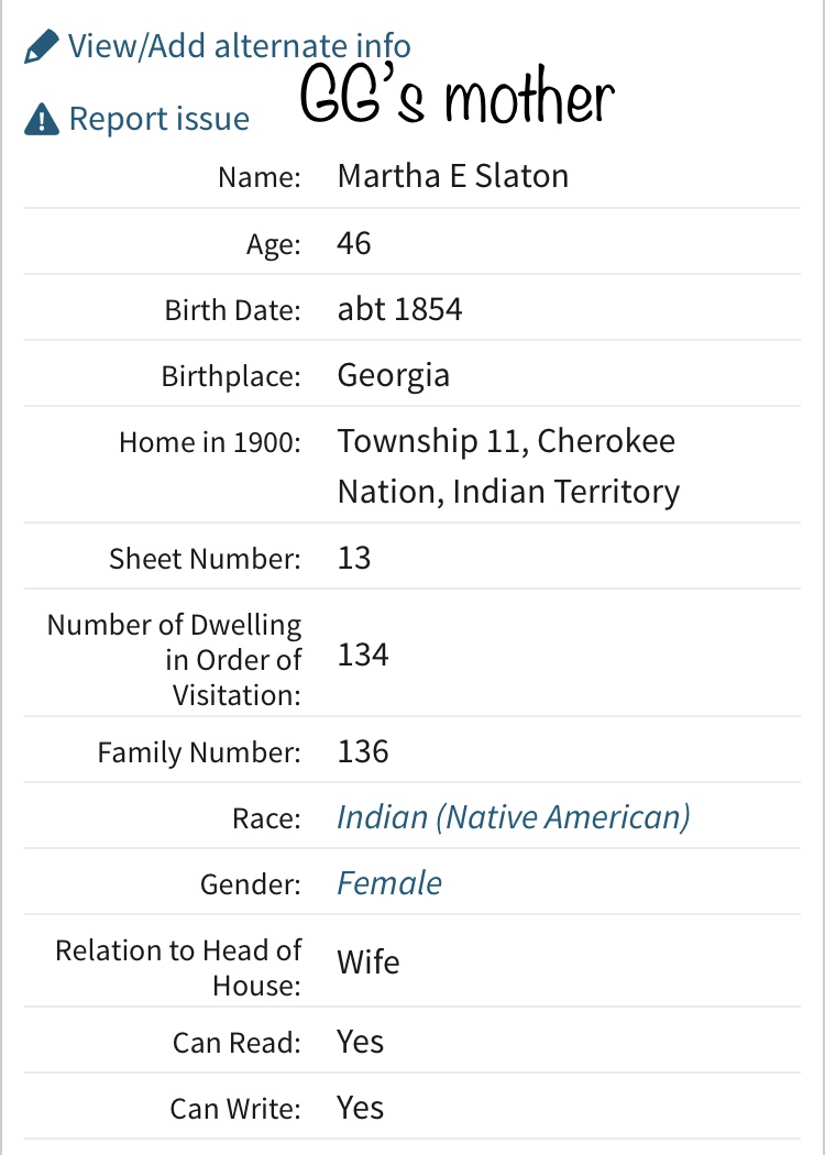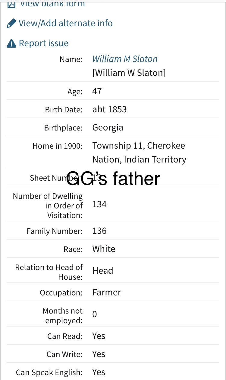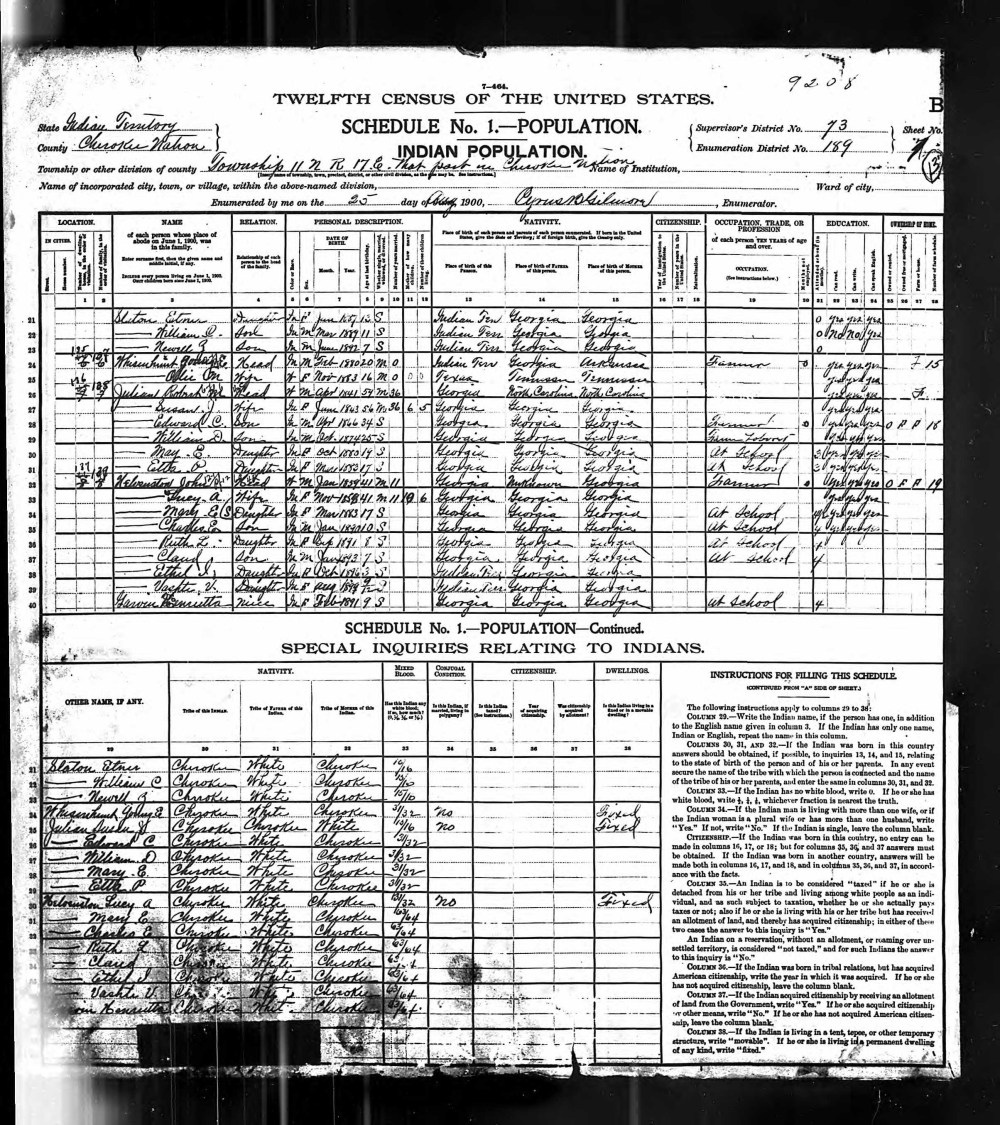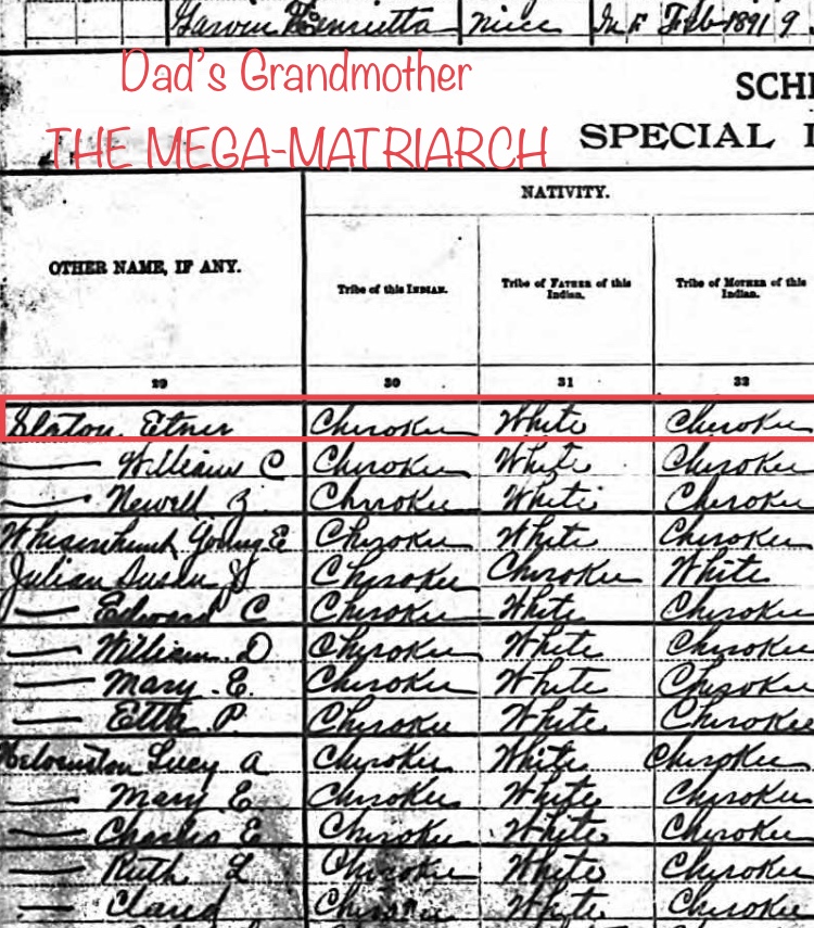 Etner Slaton: white father/Cherokee mom = RACE: Indian (✔)