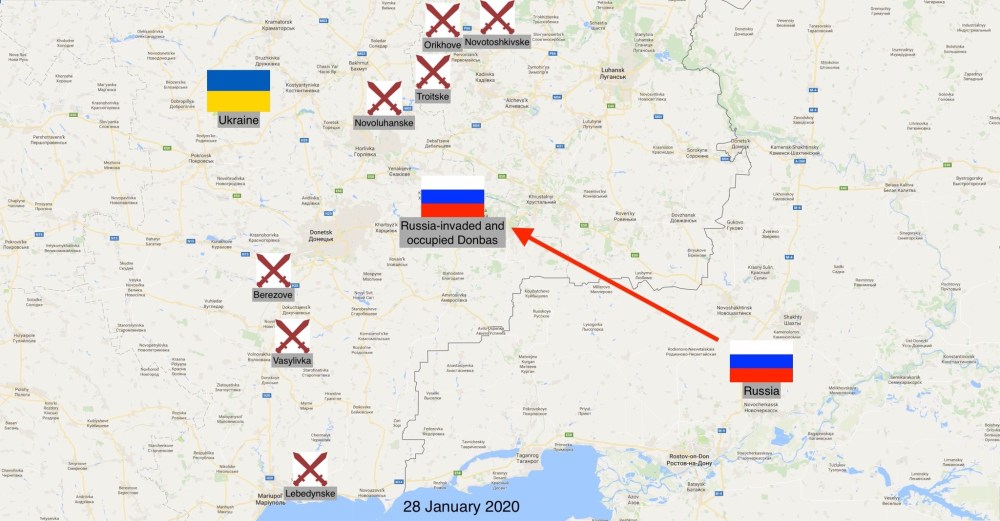 Meanwhile, Ukrainian Michael McKay reports that yesterday — [January 28, 2019] — “the Armed Forces of the Russian Federation attacked Ukrainian defenses 12 times. Novotoshkivske was hardest hit. The invaders fired heavy weapons prohibited by the Minsk Agreements. 2 Ukrainian soldiers were wounded by an exploding mine.”
